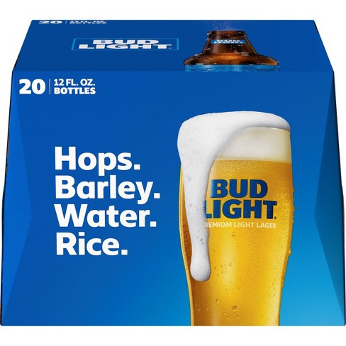 Bud light is brewed longer for a refreshingly easy drinking taste using a blend of rice and malted barley to give it a clean aroma and crisp smooth finish. Grab this pack of aluminum beer bottles when you re in charge of providing party drinks are in need of cold beer for a tailgate or simply want to keep a pack in your fridge so you re ready when bud light calls your name. Bud light is made with no preservatives or artificial flavors. 20 pack of 12 fl oz bottles of bud light beer.